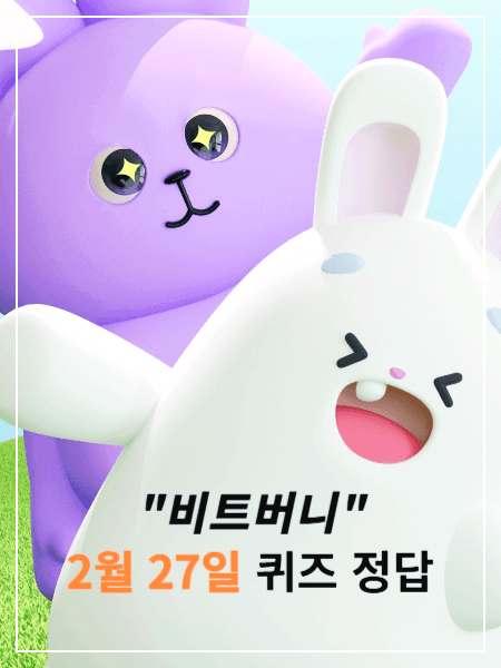 | '비트버니 2월 23일 퀴즈 정답' 퀴즈 풀고 코인 받기!(ㅍㅍㅌㅅㅌ) (2) | 2025.02.23 |