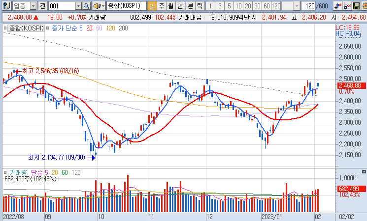 2023.02.02 코스피 일봉