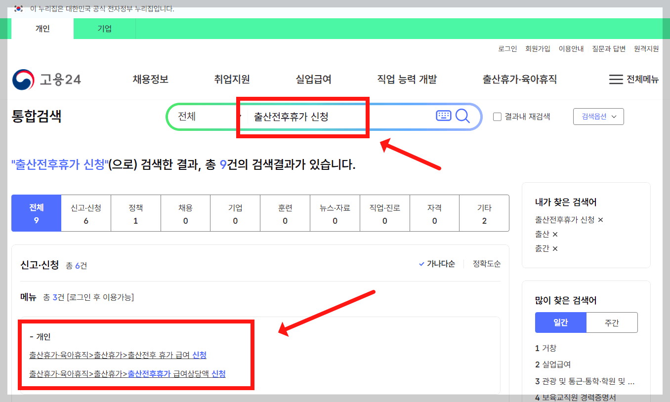 2️⃣ "출산전후휴가 급여 신청" 메뉴 선택